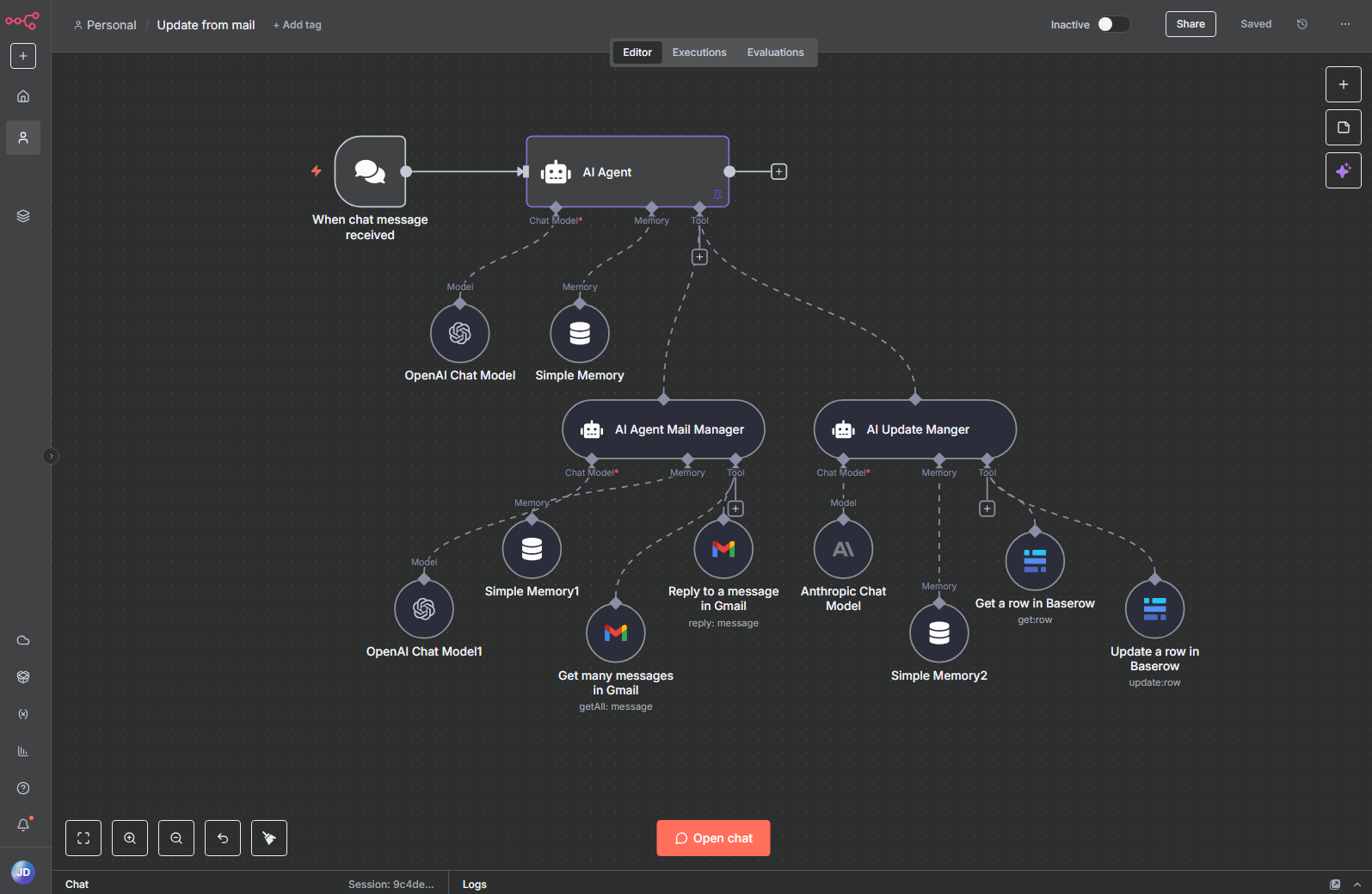 AI 代理工具节点,我们引入了一种简化的多代理编排模式,该模式可在单次执行中运行,并完全停留在一个画布上。现在,您可以将多个AI 代理工具节点连接到一个主AI 代理节点,使其能够监督和委派其他专用代理的工作。这种设置对于构建类似真实团队运作的复杂系统尤其有用,其中首席代理将任务的各个部分分配给专家。它还能帮助您快速管理,让您将冗长复杂的指令拆分成多个代理之间更小、更集中的任务。虽然使用子工作流已经可以实现类似的编排,但如果您希望在单次执行中进行交互,或者希望在单个画布上管理和调试所有内容,AI 代理工具节点是一个不错的选择。